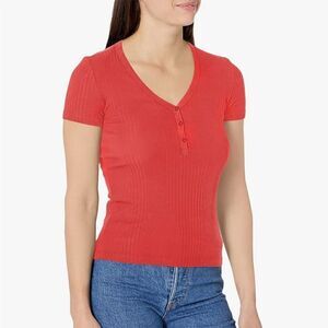Michael Stars Women's Mary Mateo Rib Short Sleeve Henley Top size medium