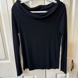Michael Stars Ribbed CowlNeck Off Shoulder Long Sleeve Top