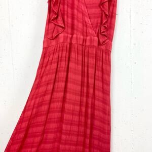 Michael Stars Womens Ruffle Maxi Dress Soft Woven Red Sleeveless V-Neck XS