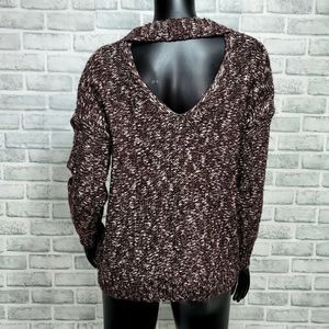 Details: Maroon/Brown & White Cutout Back Pullover Crochet Knit Sweater