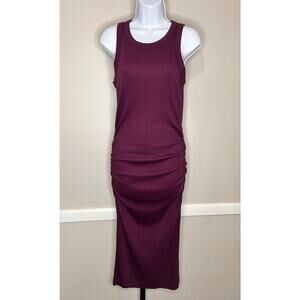 Michael Stars Wren Sleeveless Side Slit Ribbed Tank Midi Dress Plum Womens M NWT