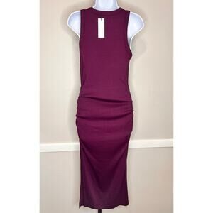 NWT Michael Stars Wren Sleeveless Side Slit Ribbed Tank Midi Dress Plum Womens M