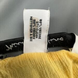Sunny and soft Michael Stars lightweight top in a sheer gauze texture with a flowy fit and adjustable front tie. Warm golden yellow color, semi-sheer viscose fabric, and breezy 3/4 sleeves make this the ultimate vacation layer or festival styling piece. No tagged size—best fits S/M depending on desired fit. Made in India, 100% viscose. Dry clean only.