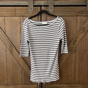 Michael Stars for Anthropologie Shine Boat Neck Striped 3/4 Sleeve Top Size M/L