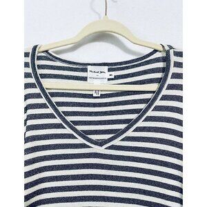 Michael Stars for Anthropologie Womens M/L Stars Shine Tee Gray White V Neck Top