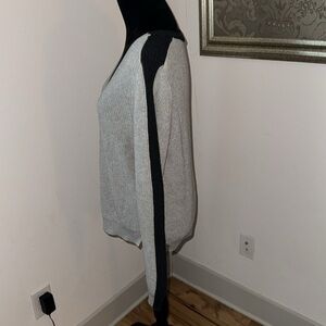 Michael Stars gray ribbed V-neck black sleeves stripe 100% Cotton sweater Sz L
