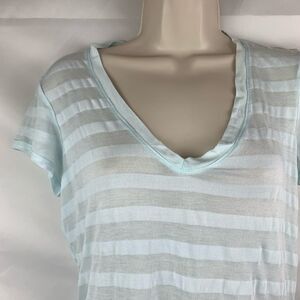 Michael Stars green burnout stripped v- neck top. Semi sheer.