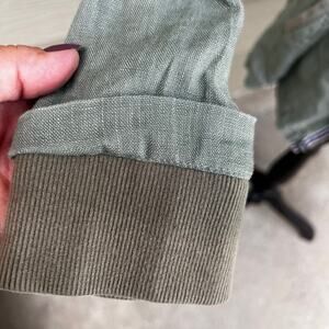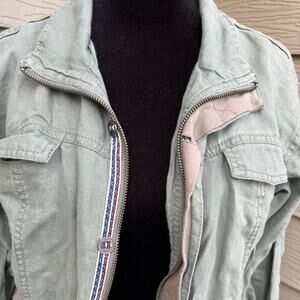 Michael Stars women’s size S linen jacket. Sage green. Full zip front with hidden buttons. Two chest pockets with flaps. Two front pockets. Drawstring waist, cuffed sleeves at wrist. Great condition!