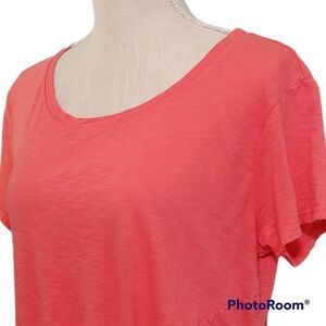 Michael Stars one size coral red short sleeve rouched front scoop neck t-shirt