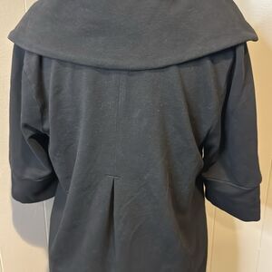 Michael Stars black stretch jersey button front adjustable shawl collar jacket. French terry lining. Elbow length sleeves with hem band. Cotton/spandex blend. Size one (XS-S) - oversized. Armpit to armpit approximately 21 inches. Shoulder to hem approximately 23 1/2 inches. Nonsmoking home.