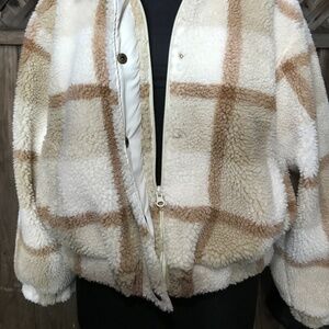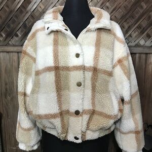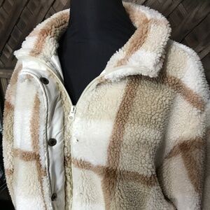 Michael Starts Rose Sherpa Plaid Teddy Jacket