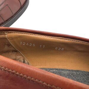 This Michael Toschi Men's 11 M Loafer Slip On exudes sophistication in a rich brown kidskin leather. Crafted in Italy, the shoe features an animal print pattern for a distinct touch of style.