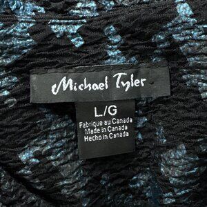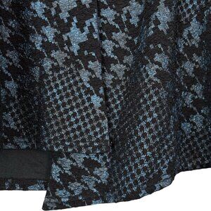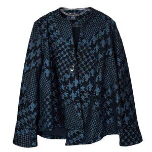 Michael Tyler Patchwork Houndstooth Button Scrunch Knit Jacket Blue Black Size L