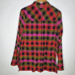 Michael Tyler Womens Colorful Plaid Button Up Back Blouse Size S Art To Wear