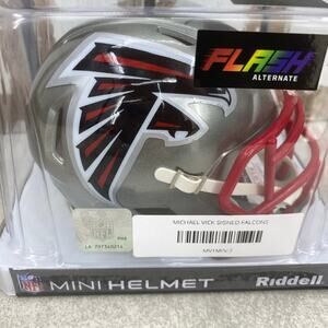 Own a piece of NFL history! A Michael Vick autographed Atlanta Falcons mini helmet. This authentic original helmet is a great for any football fan or collector. The helmet features the alternate "Flash" design and is authenticated by Beckett Authentication Services (BAS).