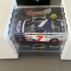 Limited edition Michael Waltrip #7 ’99 Chevy Monte Carlo 1:24 scale diecast car by Team Caliber. Features Mattei Motorsports with Philips/Klaussner sponsorship.