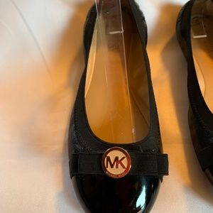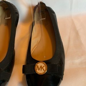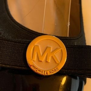 Michael by Michael Kors Black Dixie Ballet Flats with Gold Hardware! There is slight damage on the inside of both shoes as shown in the last two pictures.