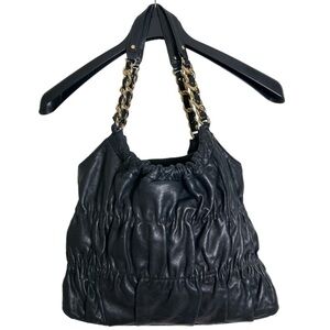 Michael by Michael Kors Jet Set Gathered/Ruched black leather bag chain straps
