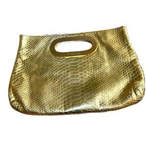 Michael by Michael Kors Leather Metallic Python Embossed Clutch