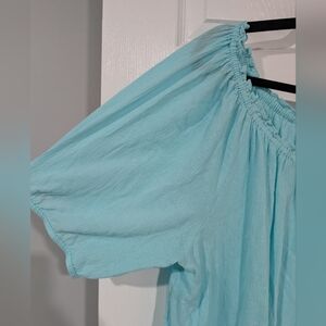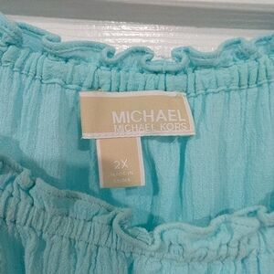Michael by Michael Kors Light Blue Peasant Blouse Cinched Waist in Size 2X