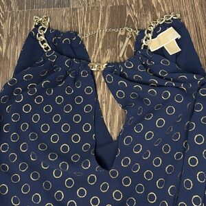 Michael Michael Kors sleeveless tank top. It has chain detailing closure around the neckline. Navy in color with gold hoops throughout. Size small