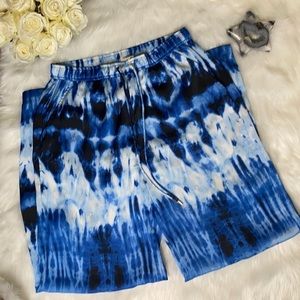 Michael Kors tie-dye drawstring pants some stretch around the waist. Size 8 excellent condition. Light weight material, palazzo style pants, wide leg so straight full leg all the way down. Has pockets as shown. Please see measurements.
