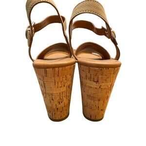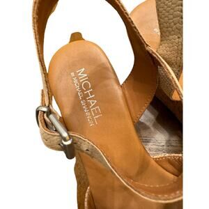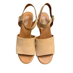 Michael by Michael Shannon Open Toe Tan Platform Wedge Buckle Sandals Shoes 9.5
