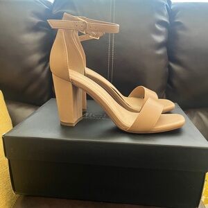 Michael by Michael Shannon Stella – Women’s Open Square Toe Block High Heel Ankle Strap Sandals – Beige/Nude – Size 8M -Wore this pair of shoes for a wedding. They are super comfy and super stylish! Off Broadway Shoes (where I purchased) description - With a synthetic upper featuring a square toe for an elegant finish, this ankle buckle strap Sandal looks great with jeans, dresses or skirts for maximum versatility. The lightly Padded foot bed soothes your foot while the 3 1/4 half block heel stabilizes your walk for confident strides. Synthetic upper Ankle buckle strap closure Square toe Lightly Padded foot bed 3 1/4 half block heel.