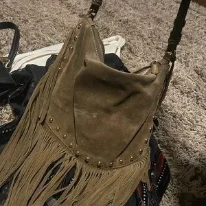 very unique crossbody i used plenty of time and got many compliments on it,has a couple of stains inside,outside is perfect condition