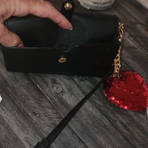 Michael kors crossbody wallet with cell phone pocket. Black with gold hardware.