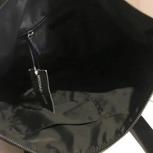 Authentic Michael kors NWT Black nylon tote handbag with black leather strap & trim main compartment 3 pockets at interior wall 1 zip closure & zip closure at top logo at front please check all photos hight 17” width 19” depth 4.25” Strap drop 7.75” Bag dimensions are based on approximate measurements.