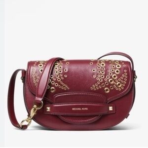 Michael kors Cary medium grommeted saddle bag in burgundy leather