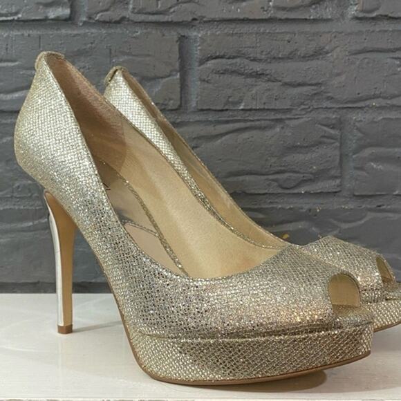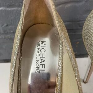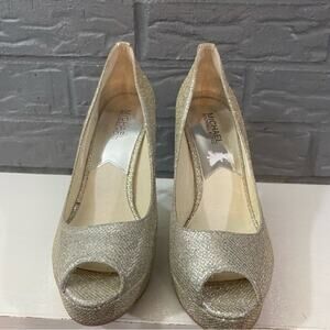 Michael kors Ericka Gold Glitter Peep Toe size 9 Platform Heels Evening Shoes