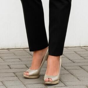Keywords: gold heels, glitter heels, peep toe heels, platform heels, party shoes, evening shoes, gold glitter shoes, dress heels, glamorous heels, sparkly heels