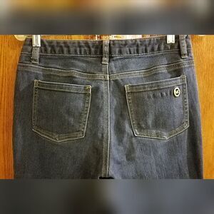Here I have a pair of "Michael Kors Izzy skinny Jeans" these are in Great condition, the back pocket has a little of bubbling from Stretching, but won't be noticeable when in use. The MK symbol on back pocket is a little bent but nothing crazy, the inside wording for the style is faded a little so you only see the word Skinny instead of Izzy skinny. These stretch a little for better fitting ability. Dimensions W 15" 5/8 X Rise 7" 3/4 X Inseam 28" 1/4. Size 4.