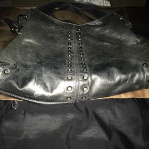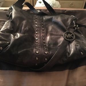 Very trendy silver nice size Michael Kors Bag... It has some wear on the handles around the edges. Other then that its perfectly in decent shape.. Great for an everday bag ... Retailed for 389.00