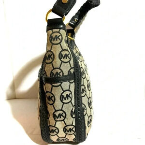 Michael Kors MK signature print canvas shoulder handbag with gold tone hardware main compartment 3 pockets at interior wall 1 zip closure & zip closure at top fabric lining pocket at both side logo at front open pocket at back hight 8” wide 10” depth 2” strap drop 10 The dimensions are based on approximately measurements before placing an order please check take a moment to view all photos using feature for a closer look