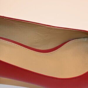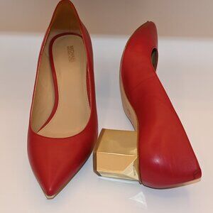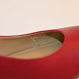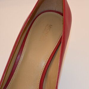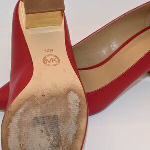 Gently worn red heels by Michael Kors size 10M. There are some creases and some flaking on the inside (pictured) from normal wear and tear. These are fun heels that can dress up a casual outfit and will definitely highlight formal occasions!