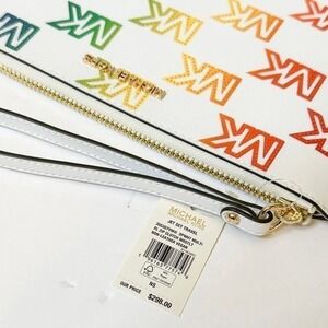 Michael kors XL zip clutch wristlet optic white multi Rainbow