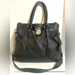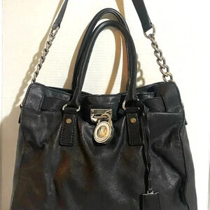 Michael kors black leather satchel handbag