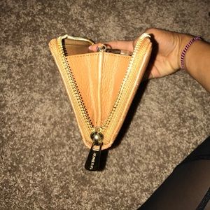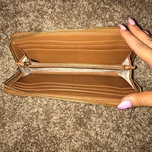 Soft pebble leather in luggage. Used a couple of times in great condition. Zipper works perfectly