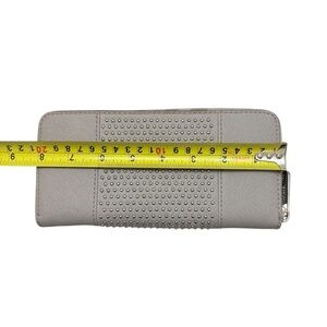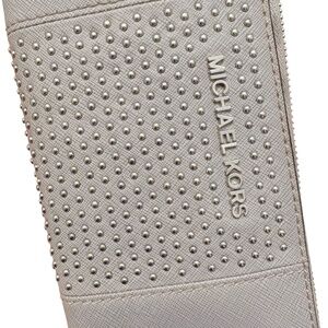 Michael kors gray saffiano leather silver studded zipper clutch wallet new