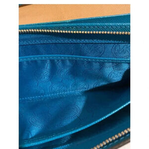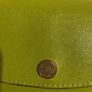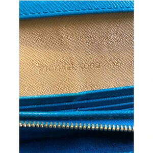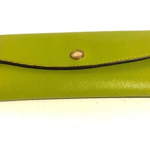 Michael kors green saffiano leather wallet with gold tone hardware main compartment 6 cash slots fabric lining exterior & lining have some stains marks hight 3.5” wide 7.5”The dimensions are based on approximately measurements before placing an order please check take a moment to view all photos using feature for a closer look