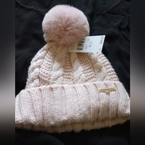 Michael Kors Cable Knit Teddy Fleece Faux Fur Pom Pom Beanie Hat Women Size One