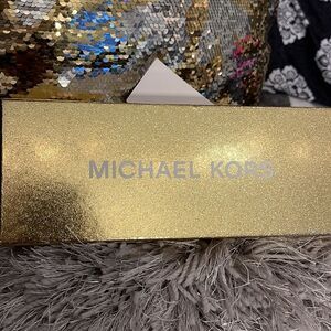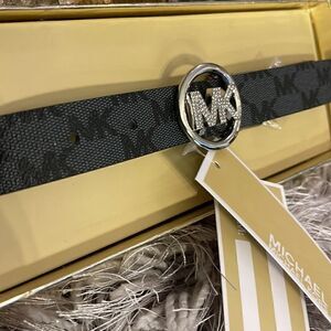 With silver tone, rhinestones/bling MK circle logo belt, buckle new in tags newest box includes beautiful, gold glitter, gift box, and gift tags. If you have any questions, please feel free to message me I accept offers and bundles.