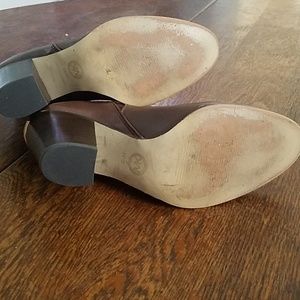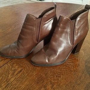 Wonderful Micheal kors pull on leather booties with stretch gussets. Brass accents at heels. See picture of gussets for rippling