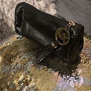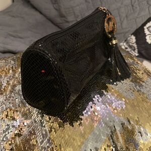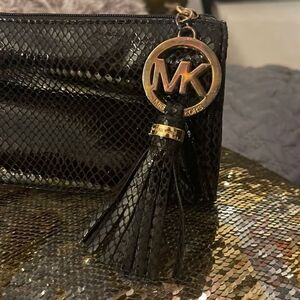 Michael kors snakeskin makeup cosmetic bag/wristlet w/tassel logo bag charm