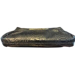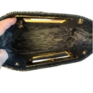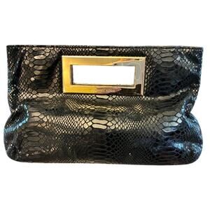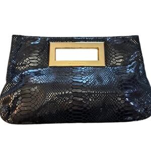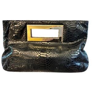 Michael kors snakeskin print black patent leather clutch handbag gold hardware.