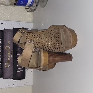 Michael kors tan blingy josephine platform wedge sandal, sz 7.5