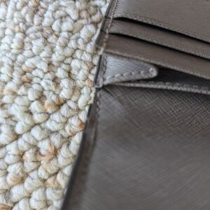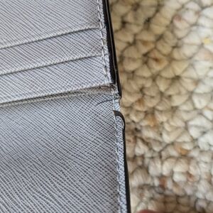 a few flaws from wear as you can see in photos where material is coming up a bit in inside corners and there are some spots on the front